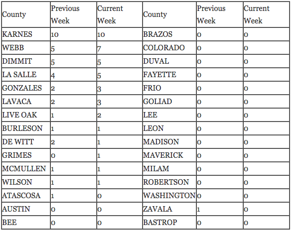 Karnes County leads development in the region gaining two to 10 rigs running this week. See the full list below in the Eagle Ford Shale Drilling by County below.